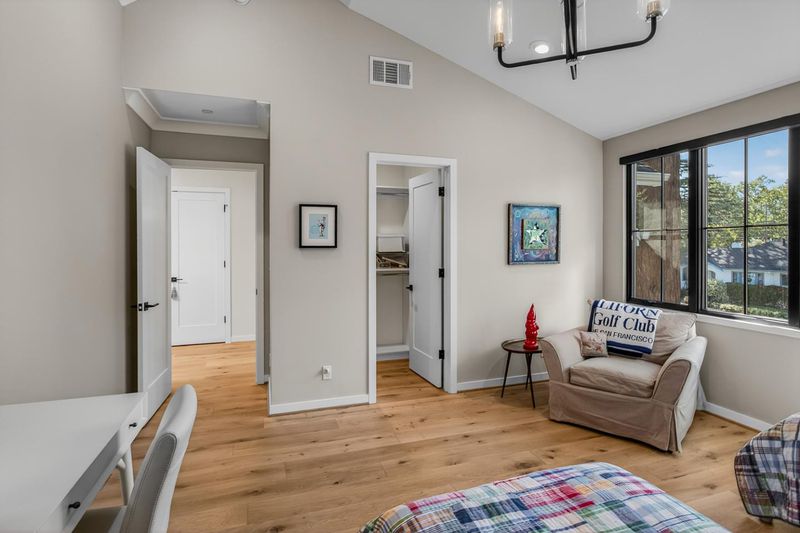 Indoor-outdoor living takes center stage at this elegant, modern farmhouse in Redwood City's most sought-after neighborhood, Edgewood Park! Built in 2019, the home offers a fresh, contemporary feel with classic interiors that include fine hardwood floors, abundant natural light, and a floor plan that adapts easily to a variety of needs. Formal living and dining rooms are complemented by a full wine bar and a designer kitchen and a spacious family room opens through a retractable wall of glass to the resort-like grounds. Two bedrooms on the main level are perfect for guest and/or office needs, while three additional bedrooms upstairs, including the primary suite, are arranged around a central lounge. The rear grounds are equally well appointed, with a separately fenced pool, expansive lawn, and generous space for entertaining and play in a gated setting. The overall result is a home that delivers both style and functionality in a premier location just minutes from vibrant downtown amenities and with easy access to major commute routes.