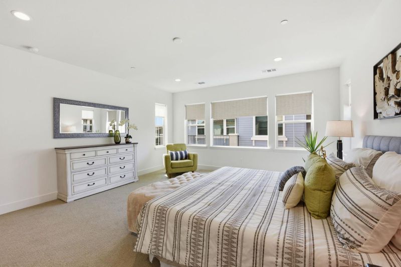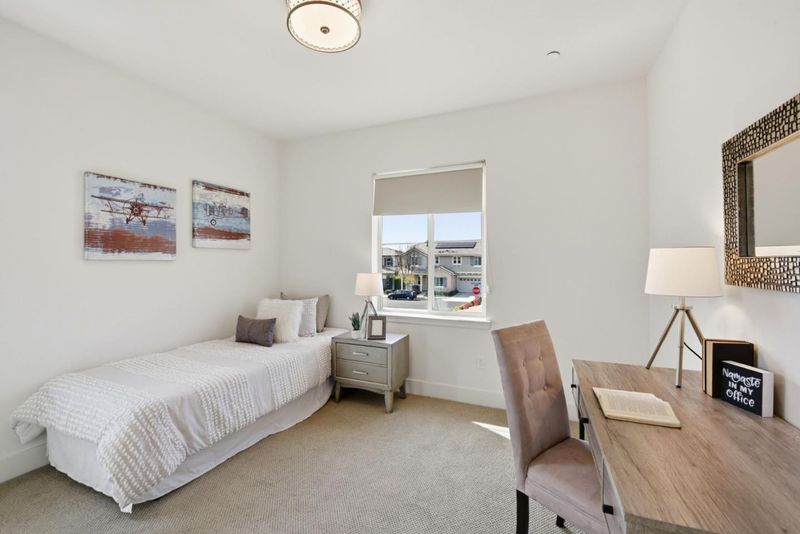 Waking up to gentle morning sun! This auspicious East facing home is designed with luxury in mind. This 2-story home encompasses the lavish and functional living. Delight in grand kitchen, nook, living and dining areas where your family and friends can enjoy time together. A separate family loft upstairs, perfect for comfort and privacy. Escape to your romantic master bedroom suite - spa like bathroom with a soaking tub + two large walk-in closets. A ground suite is ideal for in-laws or home office. It also includes a 2-car attached garage with potential for a third car or in-home gym. Covered patio is ready for your indoor and outdoor party. Situated in a prime Newark location with EZ access to local schools, parks, shopping, Costco and Dumbarton Bridge and I- 880, facilitating commutes to major Silicon Valley employers. An Active HOA with surveillance camera for community watch. Plus, save money and environment with paid-off Tesla solar & power walls!!