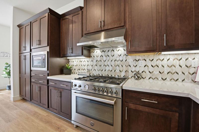 - Countertop - Quartz, Dishwasher, Exhaust Fan, Garbage Disposal, Island with Sink, Microwave, Oven Range - Gas, Refrigerator