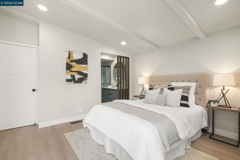 Step into timeless elegance with this beautifully remodeled, mid-century modern single story home that blends classic architecture with contemporary luxury design. Every inch of this residence has been thoughtfully renovated, honoring the iconic style of the era, while offering today's most sought after amenities. Upon entry, clean lines, vaulted ceilings and expansive windows flood the open-concept layout with natural light, creating an inviting, airy atmosphere. The large brand new kitchen features sleek custom cabinetry, under cabinet LED lights, a custom built island, quartz countertops, high-end stainless steel appliances and a convenient pot filler, perfect for both entertaining and everyday living. Retreat to the primary suite, complete with a double sink vanity and a spa-inspired shower. Enjoy seamless indoor-outdoor living with a brand new private backyard deck, new sliding glass doors, low-maintenance landscaping and new fencing. Modernized systems (w/permits) including brand new electrical main panel, plumbing, tank-less water heater, brand new electric HVAC system, new energy efficient dual pane windows, all new doors and updated roof repairs, ensuring peace of mind and comfort. Situated on a beautiful wide street in the heart of Fairway Park! Easy commute location!