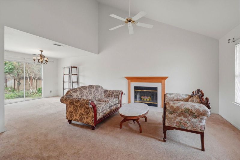 Set on a corner lot within a quiet court, this 4 bedroom, 2.5 bath home offers a bright, functional layout in a convenient Lathrop location near parks, coffee shops, restaurants, and a supermarket. Upon entry, youre welcomed into a spacious living room with vaulted ceilings, a cozy fireplace, and space for a dining area, creating an open and inviting main living space. The eat in kitchen features a peninsula with the family room directly adjacent, offering an easy flow for everyday living and entertaining. Sliding doors from the family room lead to a sizable backyard, ideal for outdoor enjoyment. Ceiling fan lights throughout the living room and bedrooms provide added comfort, and the two car garage offers parking and additional storage.