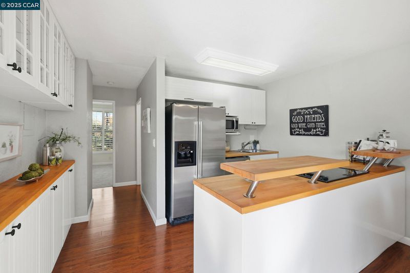 Welcome to this beautifully updated Concord condo offering modern comfort in an unbeatable location near the Walnut Creek border. This spacious two-bedroom, one-bath home features an expansive living room, dedicated dining area, and a generous private balcony—perfect for morning coffee or relaxing outdoors. The modern kitchen includes butcher-block countertops, abundant cabinet space, stainless steel appliances, and a built-in microwave that maximizes workspace. A peninsula with bar-style seating opens the kitchen to the dining area to the main living area, creating an inviting flow for everyday living and entertaining. Both bedrooms are well sized with brand-new carpet, new paint, plantation shutters and ample closet space. Additional features include, new dual pane windows and lots of storage. The well-maintained community offers landscaped grounds, a refreshing pool, and two assigned covered parking spaces. Minutes from De La Salle and Carondelet High Schools, Trader Joe’s, shopping, BART, and freeway access, this home blends convenience, comfort, and value. Move-in ready—don’t miss this opportunity!