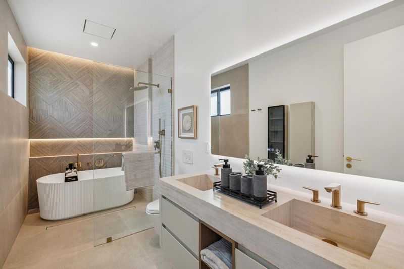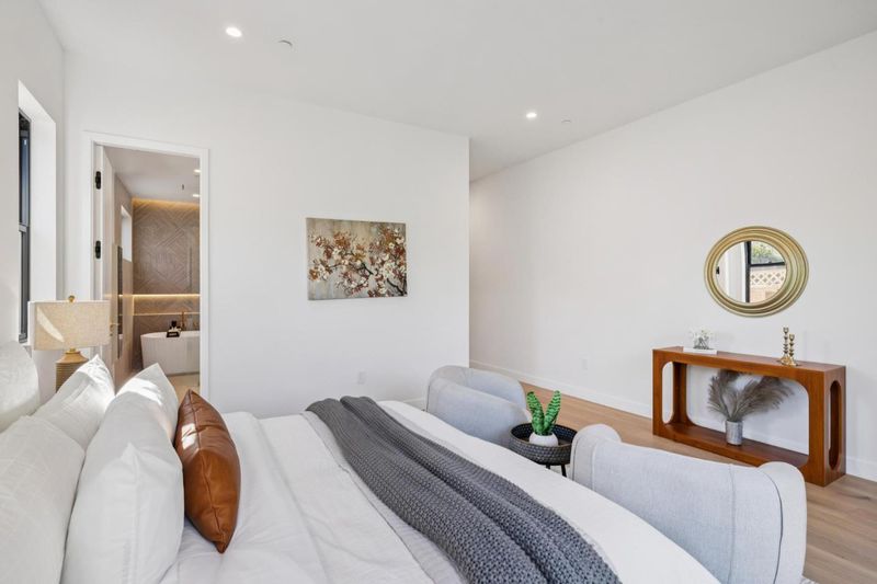 Welcome to 152 Bland Avenue, ideally located just two blocks from vibrant downtown Campbell. A single-story residence newly completed in 2026. The home perfectly blends modern farmhouse style w/ contemporary finishes, offering exceptional curb appeal & a serene, fully landscaped backyard retreat. Thoughtfully designed w/ a seamless open layout, 10-foot ceilings & skylights that fill the space w/ abundant natural light, creating a bright & inviting atmosphere. Engineered hardwood flooring & refined modern detailing run throughout. The heart of the home is a beautifully designed kitchen centered on a large Dekton island, surrounded by an airy living space. It showcases custom European-style cabinetry w/ wood veneer doors, quartz countertops, a premium Thermador appliance package, & a stylish wet bar. A porcelain-finished fireplace adds a sophisticated touch to the living area. A three-panel all-weather sliding glass door creates a seamless connection to the backyard, perfect for entertaining. The primary suite also features its own sliding glass door for private outdoor access. Additional highlights include Andersen windows & a luxurious primary bathroom appointed w/ Porcelanosa tile & a freestanding soaking tub. Move-in-ready home in one of Campbell's most desirable locations.