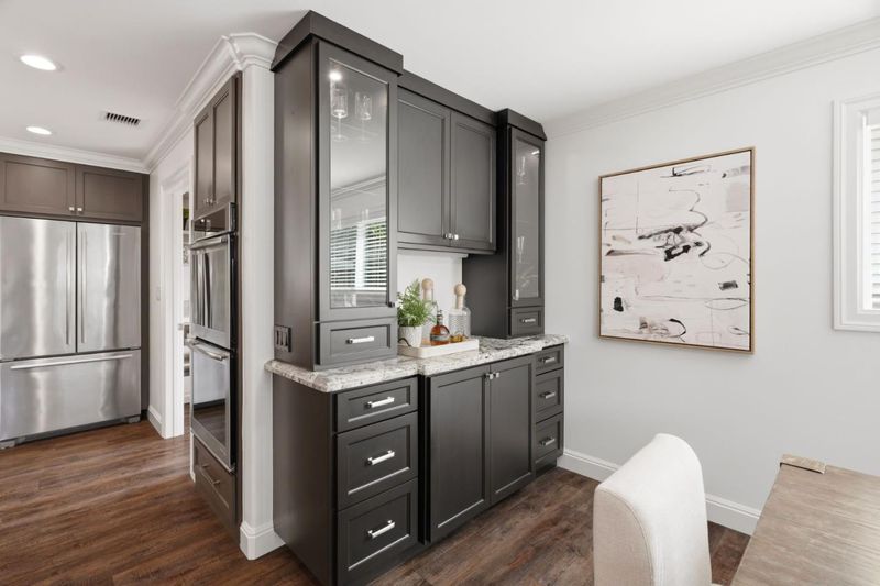 - Cooktop - Gas, Countertop - Granite, Countertop - Quartz, Dishwasher, Oven - Double, Pantry, Refrigerator, Wine Refrigerator