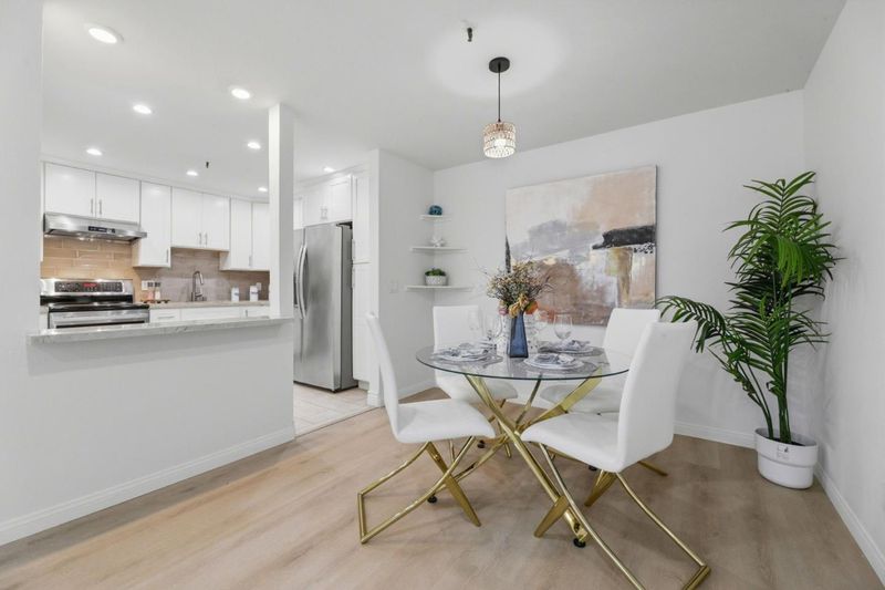 RARELY AVAILABLE END-UNIT 2-bedroom, 2-bath condo in the highly desirable Old Mill community, served by TOP-RATED LOS ALTOS SCHOOLS. This tastefully remodeled residence features fresh interior paint, new vinyl flooring throughout, upgraded bathrooms, and a modernized kitchen with granite countertops, custom cabinetry, and stainless steel appliances--ideal for comfortable everyday living and entertaining. The sun-filled living room opens to a private balcony overlooking tranquil park views, creating a bright and inviting atmosphere. A split-bedroom layout offers excellent privacy. Additional highlights include in-unit laundry, central A/C, and recessed lighting. The secure building provides elevator access and assigned under-building parking. Residents enjoy resort-style amenities including two swimming pools, hot tub, updated clubhouse, and picnic areas. Exceptionally located within walking distance to Whole Foods, Trader Joe's, Walmart, Target, 24 Hour Fitness, Caltrain, and nearby parks. Convenient access to Google, Meta, Waymo, LinkedIn, Microsoft, Amazon, Stanford University, and major Silicon Valley tech campuses. TOP-RATED LOS ALTOS SCHOOLS: Bullis Charter School (lottery), Covington Elementary, Egan Junior High, and Los Altos High School (buyer to verify eligibility).
