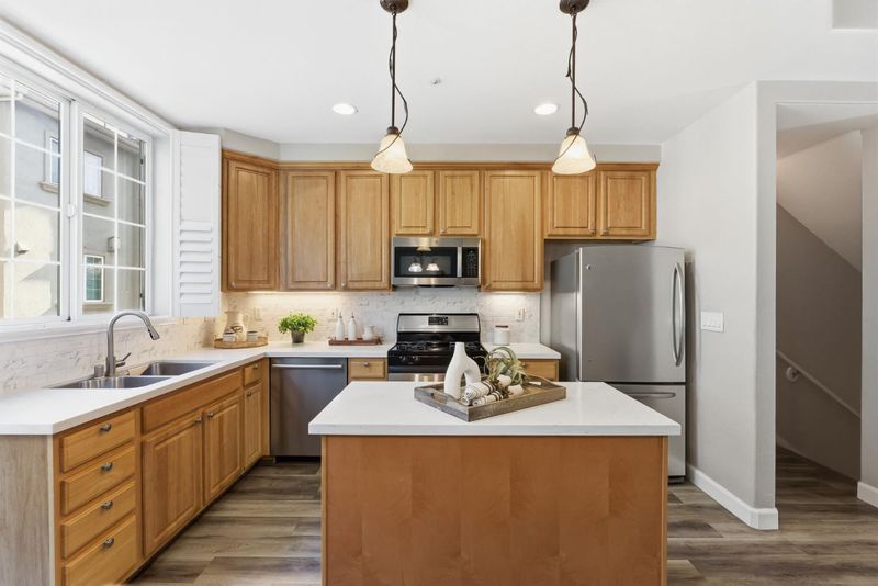- Countertop - Quartz, Dishwasher, Garbage Disposal, Island, Microwave, Oven Range - Gas, Refrigerator