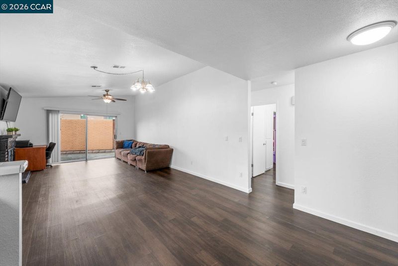 This 2 bed, 1 bath single family home offers 1,013 sq ft of opportunity for first time buyers, investors, or contractors ready to build equity through thoughtful improvements. With a functional layout and key updates already completed, it is a solid foundation for customization and long-term value. Inside, an open concept kitchen and living room features a slanted ceiling and brick woodburning fireplace that anchors the space. A sliding glass door creates seamless indoor-outdoor flow to the low maintenance backyard. Vinyl plank flooring runs throughout for durability and easy care, while ceiling fans in multiple rooms add comfort. The home includes two bedrooms and a full bath with shower over tub and vanity. A two-car garage offers generous shelving, plus additional attic storage. The fully fenced yard is designed for easy upkeep with artificial lawn. Recent upgrades include chain link fencing, a redwood front fence and gate, and electrical updates. Located minutes from Downtown Oakley, shopping, schools, parks, and freeway access, this is a renovation project with upside, delivering both convenience and potential – make your mark!