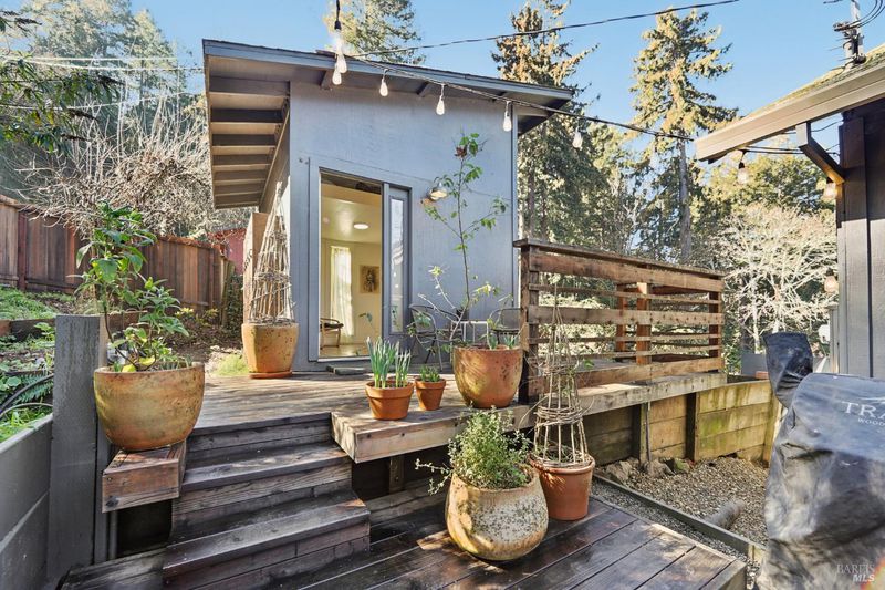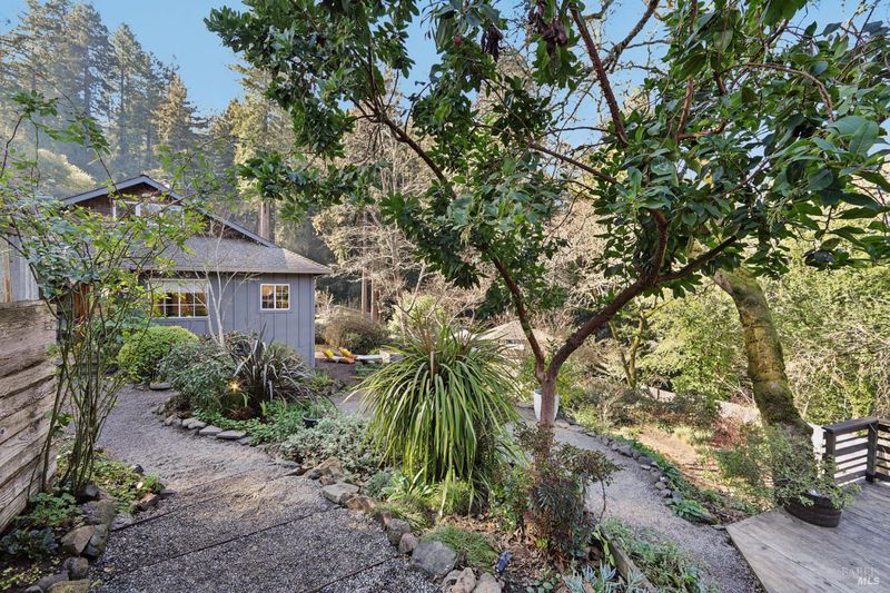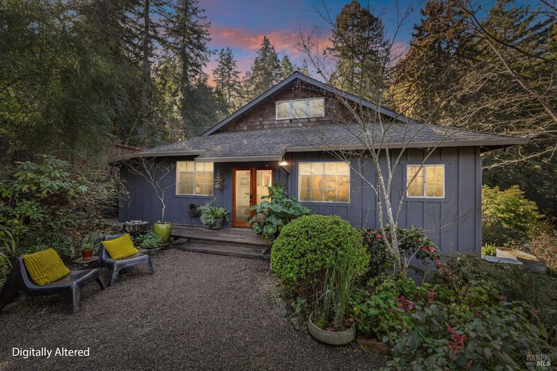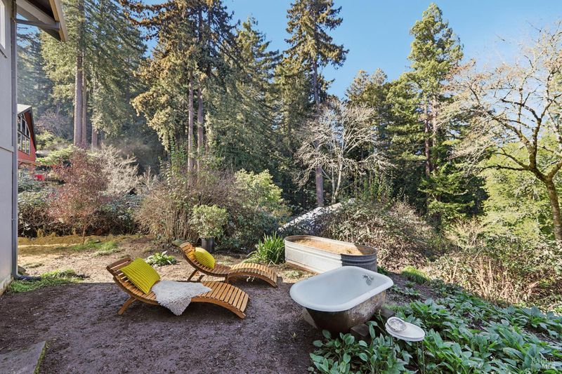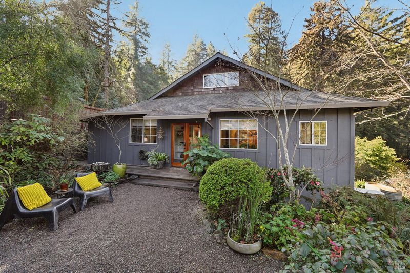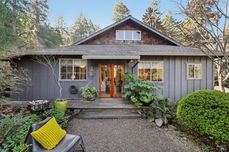 Perched on a sunny, nearly 1/2 acre parcel, this inviting Camp Meeker retreat offers a rare combination of light, privacy, and fully usable land. The elevated property enjoys a bright, open feel and Grand View'' with established gardens, ample parking, and a natural setting that feels both serene and connected. The light-filled two-bedroom, two-bath home features an easy, comfortable flow with French doors and generous windows that bring in abundant natural light. Thoughtful indoor-outdoor connection defines the living experience, from relaxed mornings to evenings spent entertaining. The primary bathroom includes a soaking tub, radiant heated floors complemented by a private outdoor soaking tub, an ideal place to unwind and enjoy the surrounding sounds of nature. An expansive deck and firepit further enhance outdoor living, offering space to gather, relax, and take in the setting. A detached studio provides excellent flexibility for a home office, creative space, yoga room, or guest accommodations. Ideally located near the village of Occidental, local wineries, forest trails, Russian River beaches, and the Sonoma Coast, this property works beautifully as a full-time residence or a peaceful weekend retreat capturing the best of West Sonoma County living.