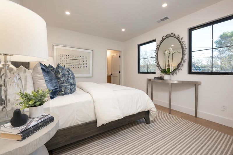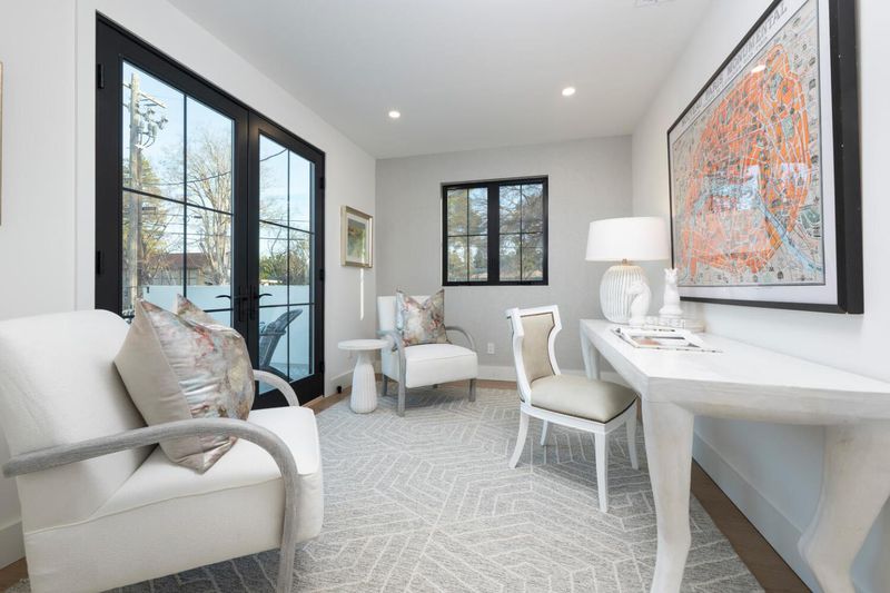 A stunning Spanish Revival down-to-the-studs remodel on the picturesque, tree-lined streets of San Mateo Park, this expansive five-bedroom, five-bathroom residence offers a rare blend of architectural elegance and modern sophistication. Soaring nine-foot ceilings grace the main level, where a sunlit formal living room flows effortlessly into an elegant dining room. The chefs kitchen is both refined and functional, appointed with premium Thermador appliances, generous counter space, a substantial center island with seating, and a serving window opening to the pool terrace for seamless indoor-outdoor entertaining. The primary suite is a private sanctuary, featuring a dedicated office and sitting area with direct access to a terrace overlooking the manicured grounds, limestone patio, and newly refinished swimming pool, an idyllic setting for relaxation. A separate pool room offers exceptional versatility and may serve as a fitness studio, yoga retreat, or guest suite with an en suite bath. Additional amenities include multi-zone climate control, an EV charging station, and exceptional craftsmanship throughout. This distinguished Spanish Revival residence presents timeless style with modern comforts, ideally located moments from downtown San Mateos dining, shopping, and amenities.