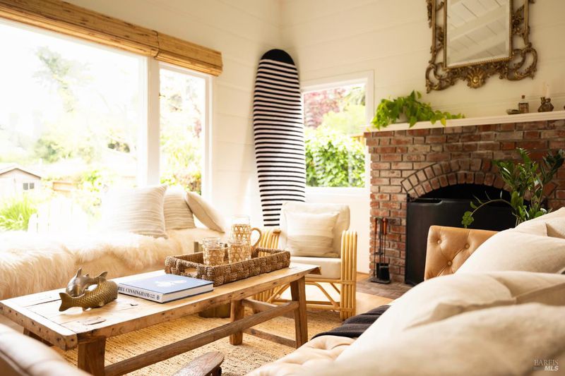 Considered one of the six best laid-back homes for surfers by The Week, among a curated span of surf cottages worldwide, 10 Park Avenue embodies the quiet essence of coastal living in Bolinas. Immaculate and timeless, this beach cottage is rich with charm and character, tucked along one of Bolinas' most beloved streets just moments from the sand. Thoughtfully maintained, the home offers a relaxed, enduring sensibility where warm hardwood floors, abundant natural light, and generous window seating create an atmosphere that is both inviting and unpretentious. At the heart of the home, a beautifully crafted Rumford fireplace built by a local mason anchors the vaulted living room, offering a place to gather, unwind, and settle into the rhythm of the coast. Garden views extend from nearly every room, reinforcing a seamless connection between indoors and out. The kitchen carries a cheerful, old-school spirit, with classic Heath tile, colorful counters, casement windows, and updated appliances blending function with a sense of nostalgia. Two well-separated bedrooms, one on each level, provide privacy and flexibility, complemented by an updated bath. Outside, the garden is lush, fenced, and perfectly scaled bathed in sunlight throughout the day. A majestic Buckeye tree anchors the backyard, creating a sheltered and serene setting for outdoor dining, quiet mornings, or creative retreat. Bolinas moves to its own rhythm defined by nature, independence, and a life lived close to the ocean. From 10 Park, everything is within easy reach: surf breaks, tennis courts, downtown, and meandering neighborhood paths. It is a place where surfers, artists, and naturalists intersectwhere life feels simple, grounded, and quietly extraordinary. This is cute cute!
