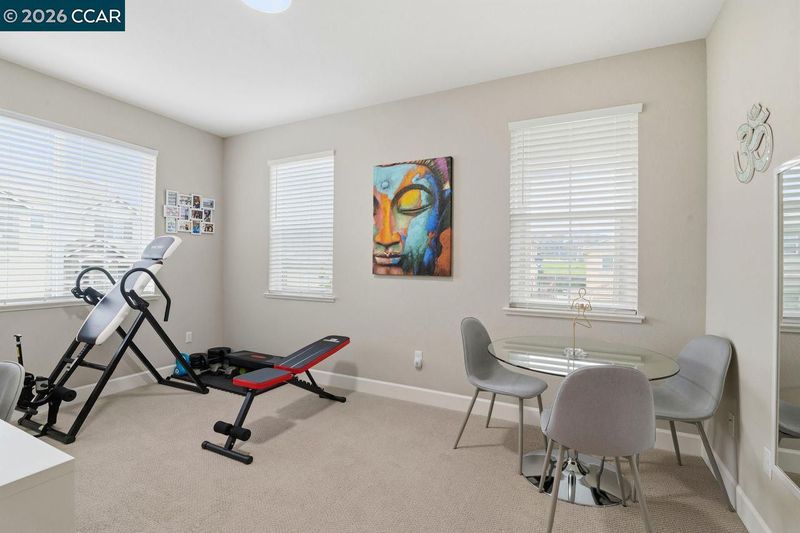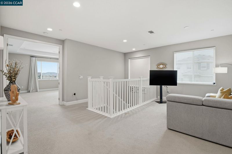 An exceptional opportunity to own the highly sought-after Barton Model on a premier corner lot, surrounded by rolling hills, top-rated schools, shopping, dining & convenient access to Napa Valley. This newer home blends contemporary design with thoughtful builder upgrades throughout. The light-filled, open layout flows seamlessly from the living room to the family room, dining area & kitchen, showcasing luxury vinyl plank flooring, quartz countertops, tile backsplash, fireplace, powder room & laundry room. The fully finished, turnkey backyard retreat features an adjustable louvered patio cover with solar lighting, concrete walkways & mature trees ideal for entertaining, unwinding, or enjoying California evenings outdoors. Energy-efficient & tech-forward highlights include 10 owned solar panels with bird-proofing, a tankless water heater, EV-charger-ready plumbing, a hardwired security system, custom automatic window screen & more. The spacious primary suite offers a serene escape with a walk-in closet, marble soaking tub, dual vanities & a beautifully coordinated walk-in shower. A versatile loft plus three additional bedrooms provide flexibility for guests or multigenerational living. Meticulously maintained & ideally positioned, this home delivers comfort, style & lasting value.