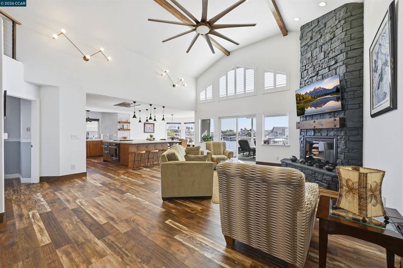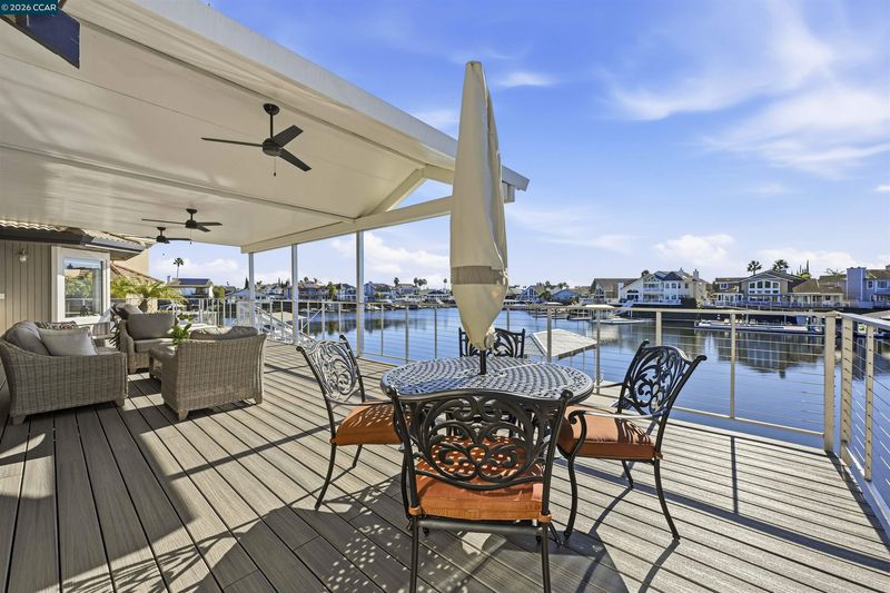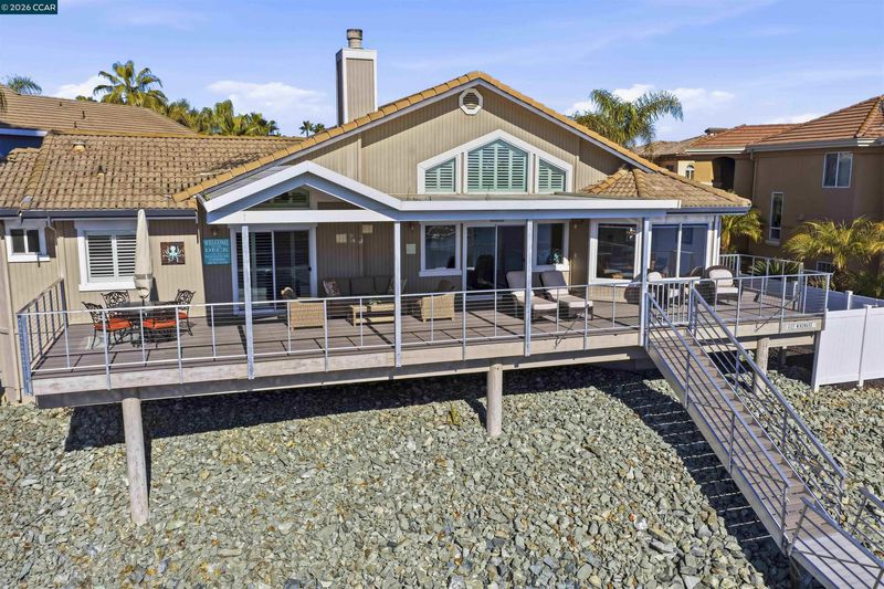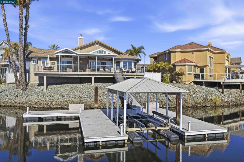 Truly spectacular unique waterfront home with breathtaking panoramic views on a point lot with approx. 116 feet of water frontage. Amazing court location with sought after southern exposure. Oversized U-shaped dock with room for multiple boats, possibly a pool, or whatever your heart desires. Waterfront luxury at its finest. Spacious open floor plan with soaring ceilings and lots of natural light, features massive great room, 3 bedrooms plus huge loft with bar. Remodeled chef’s kitchen is truly exquisite, with custom cabinets, a massive island, slab counters, high-end stainless steel appliances and spacious breakfast nook featuring stunning water views. Lovely primary bedroom features vaulted ceilings and gorgeous water views. Luxurious spa-like primary bathroom features a standalone tub and a walk-in shower. Gorgeous flooring throughout. New Trex decking. Oversized 3 car garage features built-in cabinets. Side yard access. Perfect for indoor/outdoor living and entertaining. Access to over a thousand miles of delta waterways from your backyard!