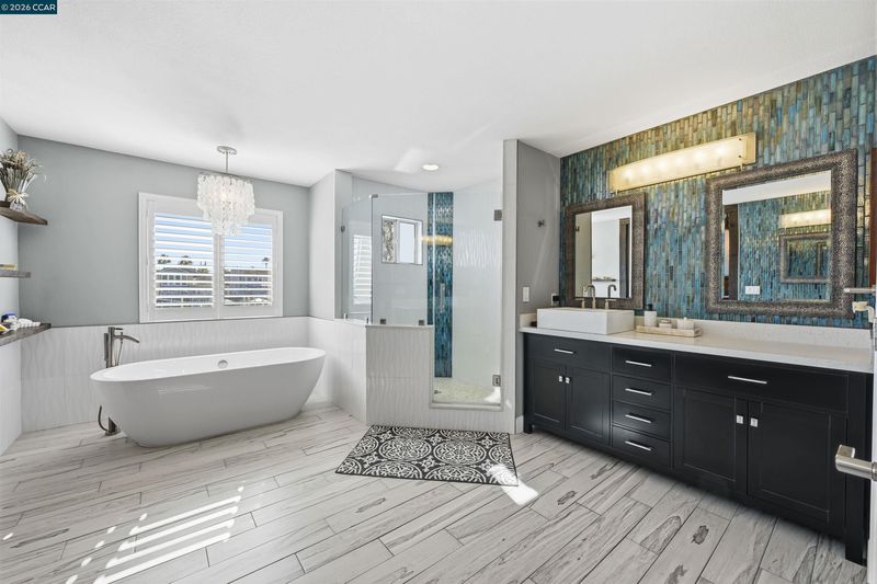 - Stall Shower, Tile, Updated Baths, Double Vanity