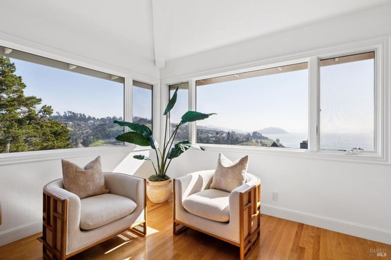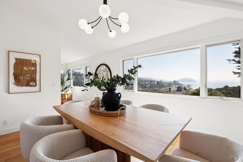 Spectacular city and Bay views set the stage for this beautifully updated Tiburon residence, located in the highly sought-after Reed Ranch neighborhood. Offering 4 bedrooms and 3 full bathrooms, the home features an ideal layout for both everyday living and entertaining. The main level showcases a light-filled living and dining room combination with sweeping San Francisco skyline and Bay views. The updated kitchen is both stylish and functional, opening to a private rear courtyard that leads to the pool perfect for effortless indoor-outdoor living. The primary bedroom suite is conveniently located on the main level with a full bath, accompanied by two additional bedrooms and a second full bathroom. The lower level offers a flexible fourth bedroom or office with a full bathroom and direct access to the two-car garage. Situated within the coveted Reed Union School District, this home offers easy freeway access and close proximity to Blackie's Pasture, providing miles of scenic walking and biking paths. A rare opportunity to enjoy the best of Tiburon living with breathtaking views, a pool, and an exceptional location.