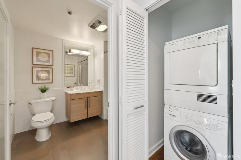 Residence 902 at The Palms offers 993 square feet of top-floor living space, featuring 2 bedrooms and 2 bathrooms, separated for privacy. Start your day with coffee on your private balcony. The semi-open kitchen is equipped with white stone countertops, two-tone cabinetry, and a Bosch-Sub-Zero appliance collection, connecting to the living space via a pass-through bar. The private primary suite features a walk-in closet with mood-setting built-ins. Both contemporary bathrooms feature floating vanities, marble counters, and striking bronze-tiled shower walls. In-unit laundry, deeded parking, and amenities complete the convenience of the home. The Palms offers residents a full suite, including 24/7 front desk, Fitness Center, Social Lounge, Business Center, Screening Theater, and Courtyard. It's also w-positioned near celebrated culinary destinations like neighborhood favorite Marlowe and Michelin-recognized establishments like Saison, Omakase, and Rooh. This South Beach address is steps from the MUNI lightrail, 0.2 miles from Caltrain, and offers easy access to Oracle Park, Chase Center, Downtown, Yerba Buena, and freeways.