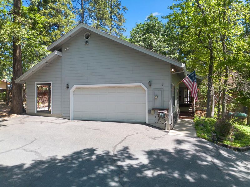 Escape to the charm of Cedar Ridge with this beautifully cared for single story mountain retreat, where comfort meets the beauty of the Sierra foothills. This property includes TWO PARCELS, the main residence plus an adjacent 0.25 acre lot APN 080-270 023-000 included in the sale, for a total of approximately 0.56 acres, offering added space, privacy, or future potential. The home features 3 bedrooms, 2 bathrooms plus a urinal in the garage, and 1,780 sqft of living space. Inside, enjoy vaulted ceilings and five skylights that fill the home with natural light. The open layout allows the kitchen to overlook the living room, ideal for everyday living and entertaining. Large windows capture peaceful views of surrounding greenery. Step outside to a private deck wired for a jacuzzi, perfect for relaxing evenings. The primary suite offers a cedar lined walk in closet and dual sinks. An attached two car garage adds convenience. Enjoy a short walk to a nearby water trail and exclusive private access to Dogwood Lake. Whether as a full time residence or weekend getaway, this single level home with an included adjacent parcel offers a rare opportunity to enjoy mountain living with extra land.