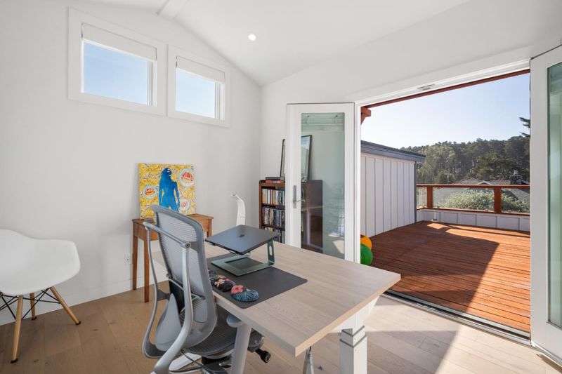 Welcome to this stunning single-family home completed in 2024 offering modern design and coastal charm. Enter to soaring ceilings of the entry way and clerestory windows filling the space with natural light. Quality finishes and built-ins grace the spaces. Concrete and hardwood floors with radiant heating provide comfort, style and durability. The open kitchen is equipped with custom cabinetry, granite countertops, stainless steel appliances including drink refrigerator and ice maker. 2 ground floor bedrooms include one ensuite (complete with accessible shower and luxurious soaking tub) and another for guests. The upstairs ensuite bedroom has its own deck where you can enjoy the view of the nearby Fitzgerald Reserve and Moss Beach bluffs, offering a perfect retreat after a long day. A bonus area/home office provides the ideal work or hobby space and access to a private deck with a forest view and peek of the ocean. Outdoor living offers a fenced yard, deck, patio, and garden with fruit trees, creating a serene environment for relaxation or gatherings. Experience the perfect blend of elegance, comfort and style in this exceptional Moss Beach home in a spectacular location close to the ocean, bluffs, and Fitzgerald Reserve. Don't miss the opportunity to make it your own!