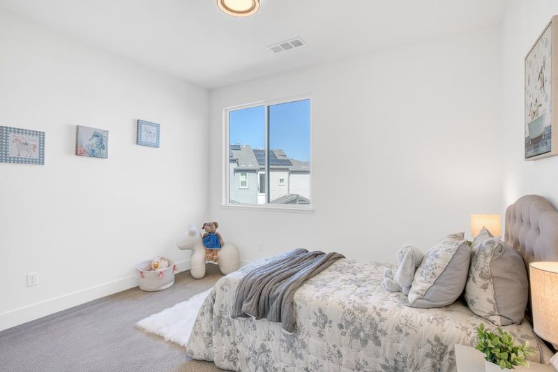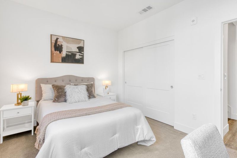 Luxury urban living in Milpitas.This immaculate 3-bedrooms townhouse coveted Parkside community is just steps from Tango Park. The bright and open second level includes a spacious living room, a bedroom with full bath, private patio, kitchen with quartz countertops, white cabinets, full tile backsplash, kitchen island, 5 heads gas stove range and side by side stainless steel refrigerator etc. Upstairs, the primary suite boasts a walk-in closet, elegant dual sinks vanity, tub and separate toilet space. Other features includes central air conditioning, double pane window, pendant lights over kitchen island, carpet in all bedrooms and stairs, and much more. An attached two-car garage provides ample storage space. Conveniently located near the Great Mall, Trader Joes, and Costco, with BART just a short walk away for seamless commuting to San Francisco and beyond.