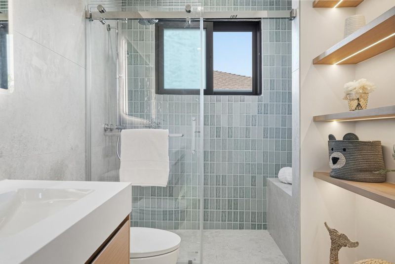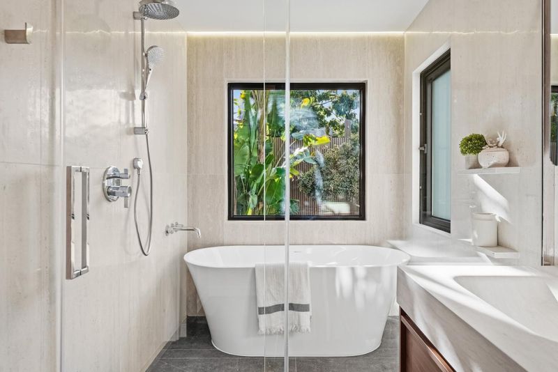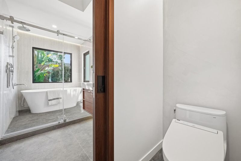 - Bidet, Double Sinks, Dual Flush Toilet, Primary - Oversized Tub, Primary - Stall Shower(s), Shower over Tub - 1, Skylight, Stall Shower, Tile