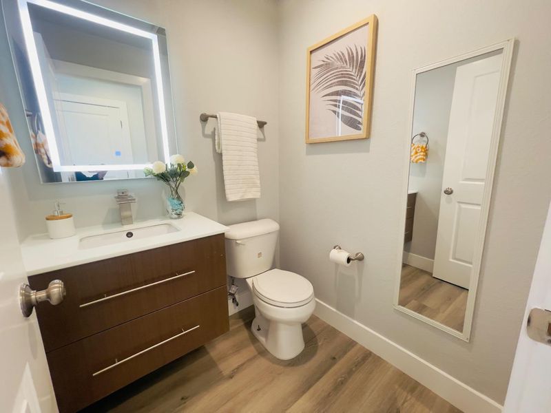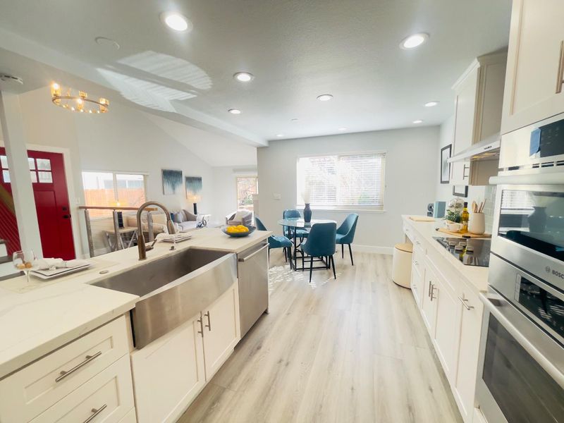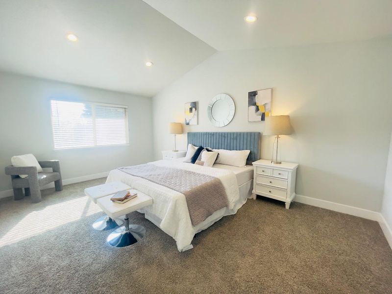 Welcome to a beautiful unique charming two story home located in a heart of San Jose. Home is an open bright high ceiling with spacious floor plan w/ 3 beds & 2.5 baths, 1,478 sqft living space. Home offer spacious kitchen cabinet w/quartz counter top, food pantry, brand new refrigerator, an electric oven range, hood over range and recessed light. Double panel windows, brand new interior paint, brand new laminate floor throughout first and second floor hallway and brand new carpet in the bedrooms. Tile floor throughout the bathrooms and separate laundry room. Spacious back yard with plenty of fruit trees and freshly paint deck where you can enjoy and relax after a long day working. Close to freeway 680, 880 and 101, shopping, restaurants, and public transportation. A must see to appreciated it.