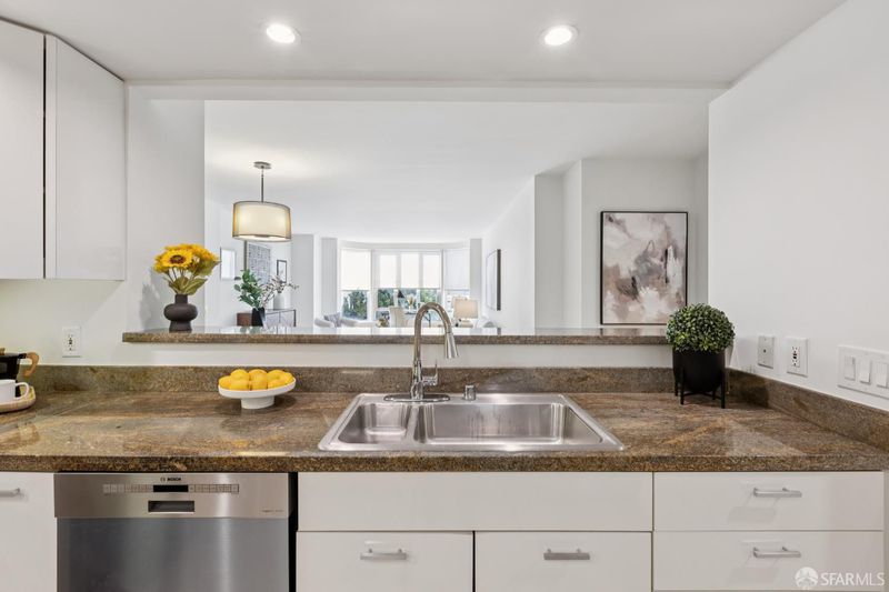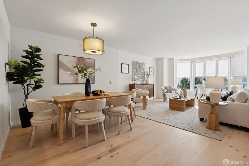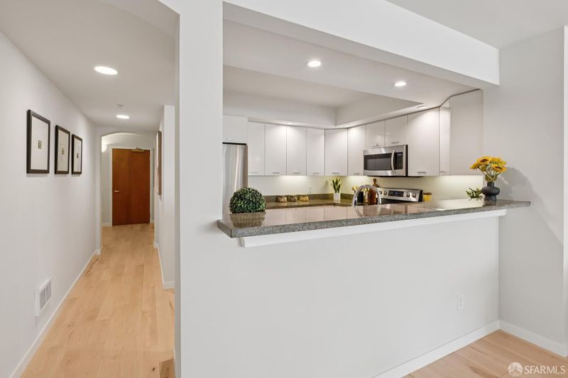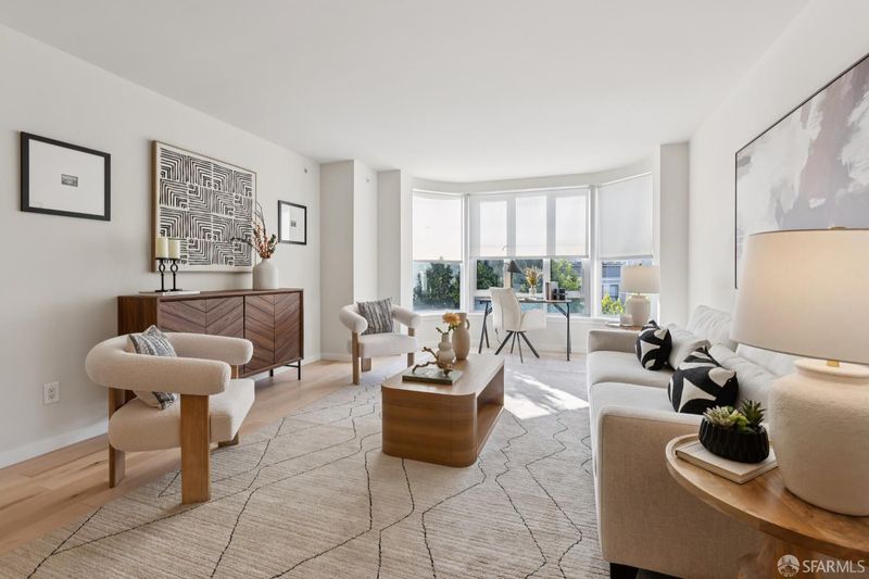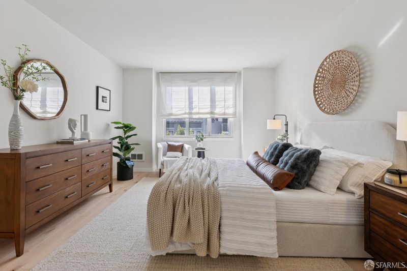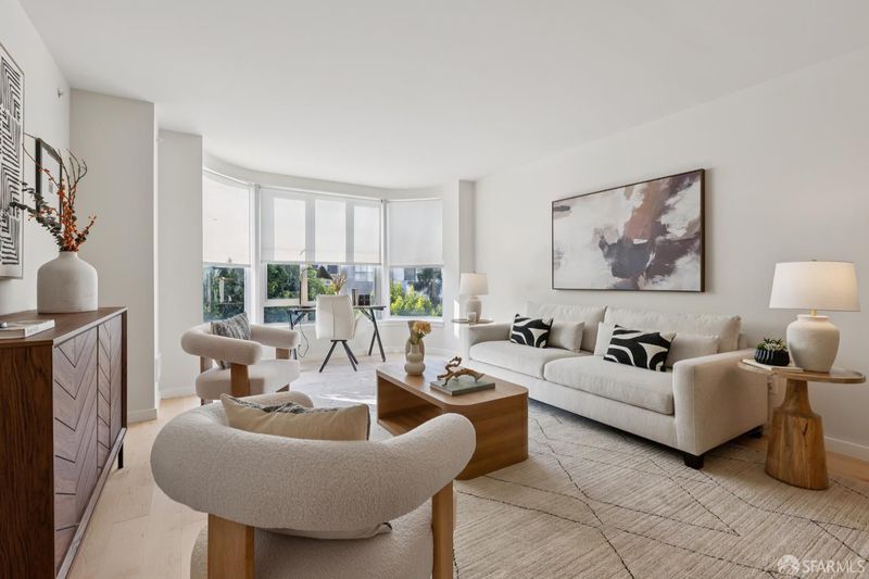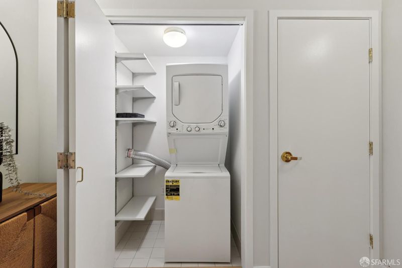 This chic and sunny large one bedroom condo located in the Arundel, a modern concrete and steel doorman elevator building, has an open floor plan, in unit laundry, private parking space in garage and a large deeded locked storage room. Maple hardwood flooring throughout. Building amenities include a rooftop deck with panoramic views of the Bay and the City, and a rear common garden. The location is unbeatable. The best of city life awaits you on Polk Street just steps from the building with fabulous restaurants, wine and coffee shops, fitness studios, charming local stores and your destination for deliciousness, the upscale BI-RITE market. HOA dues include doorman, elevator, earthquake insurance, parking (+ guest parking), storage, DIRECTV. 99 WalkScore: Walker's Paradise.