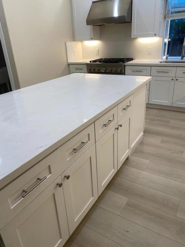 - 220 Volt Outlet, Cooktop - Gas, Countertop - Quartz, Dishwasher, Dual Fuel, Exhaust Fan, Garbage Disposal, Hood Over Range, Hookups - Gas, Hookups - Ice Maker, Island, Microwave, Oven - Electric, Oven Range - Electric, Pantry