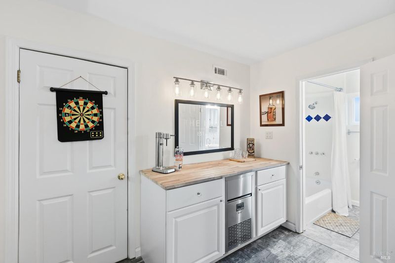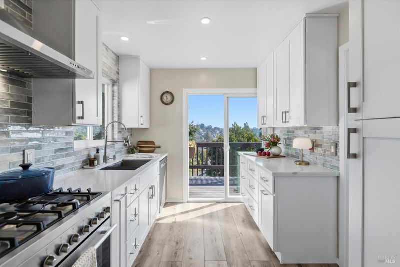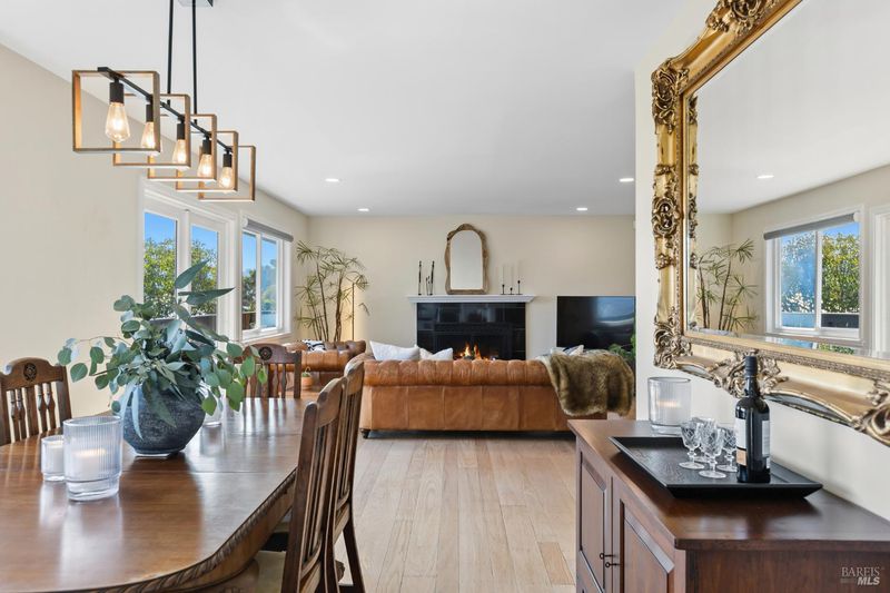 Welcome to 1422 Nye Street, a beautifully updated, light-filled residence with sweeping water and hillside views, ideally located in the heart of San Rafael. With five bedrooms and multiple living areas, this thoughtfully designed home offers exceptional flexibility for today's modern lifestyle. A gracious entry foyer opens to an inviting open-concept living and dining space anchored by a cozy fireplace. Walls of windows and sliding glass doors frame picturesque bay views and fill the home with natural light, while seamless indoor-outdoor flow leads to an expansive view deck - ideal for entertaining and relaxing. The recently remodeled kitchen is both stylish and functional, featuring quartz countertops, custom cabinetry, stainless steel appliances, a striking tile backsplash, and designer finishes throughout. Direct access to the deck and two-car garage enhances everyday convenience, while the remodeled butler's pantry and laundry area with new washer and dryer provide excellent storage and organization. The serene primary suite offers two closets, an updated bath with chic barn-door detail, and a sliding door to the deck - perfect for morning coffee or evening unwinding. Two additional bedrooms and a full bath complete the main level. The lower level adds versatility with a comfortable family room, two additional bedrooms, a full bath, and a distinctive wine tasting room with wine refrigerator and ice maker - ideal for hosting and entertaining. Additional highlights include a new roof, air conditioning, recessed lighting, updated window treatments and closet doors, fresh interior and exterior paint, refinished hardwood floors on the main level, new carpet on the lower level, a new tile fireplace surround with gas line, tastefully updated bathrooms, dual-pane windows, and a finished garage with storage and new epoxy flooring. The private, level front yard features low-maintenance turf. Outdoor living shines with multiple decks and beautifully landscaped spaces, including a paver patio with fire pit, bistro lighting, mature gardens, and fruit trees. Just moments from downtown San Rafael, this home offers the perfect blend of comfort, convenience, and an exceptional California lifestyle with easy access to restaurants, shopping, entertainment, and vibrant downtown amenities. A rare opportunity to own a beautifully upgraded home with views, space, and an unbeatable location.