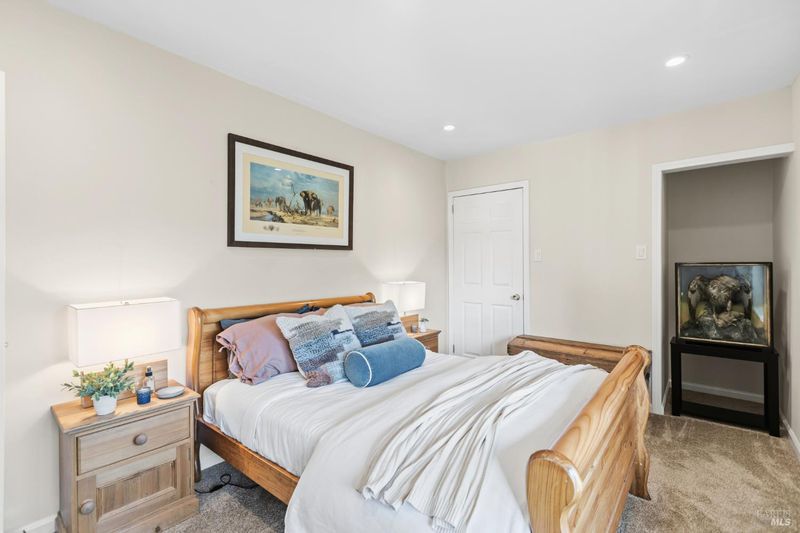 1st Sunday Open House! Welcome to 1422 Nye Street, a beautifully updated, light-filled home with sweeping water and hillside views in the heart of San Rafael. Offering five bedrooms and flexible living areas, this residence features an open-concept living and dining space with cozy fireplace, walls of windows, and seamless indoor-outdoor flow to a spacious view deck. The remodeled kitchen includes quartz countertops, custom cabinetry, stainless steel appliances, designer finishes, and direct access to the deck and two-car garage, plus a butler’s pantry and laundry area with new washer and dryer. The primary suite offers two closets, an updated bath, stylish barn-door detail, and deck access, with two additional bedrooms and a full bath on the main level. The lower level includes a family room, two bedrooms, a full bath, and wine tasting room. Highlights include a new roof, air conditioning, updated baths, refinished hardwood floors, new carpet, finished garage with epoxy flooring, level turf yard, decks, paver patio, fire pit, gardens, and fruit trees—just moments from downtown San Rafael.