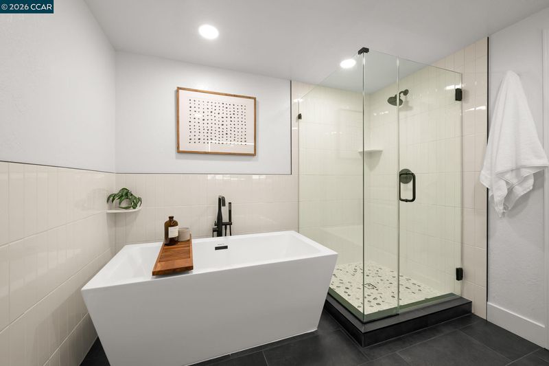This beautifully renovated 4-bd,3-ba,1,972 sq ft home in the prestigious Twin Creek enclave of San Ramon is thoughtfully updated&designed w/modern sophistication&comfort.This exceptional residence features a fully renovated chef’s kitchen,updated bathrooms,wide plank luxury flooring,dual pane windows,designer paint colors,new cabinetry&appliances,updated lighting,new HVAC&dual living spaces.The chef’s kitchen is the heart of the home,showcasing premium appliances, generous storage&contemporary designer finishes.The great room encompasses the living,dining &kitchen spaces highlighted by soaring vaulted ceilings&natural light.The inviting family room offers a wood-burning fireplace&built-in desk area.A main-level bedroom& full bath provide ideal flexibility for guests or private office.The primary suite is a true oasis w/ spa-inspired en suite featuring custom shower, soaking tub, dual-sink marble vanity&three closets.The backyard retreat includes manicured landscaping,citrus trees