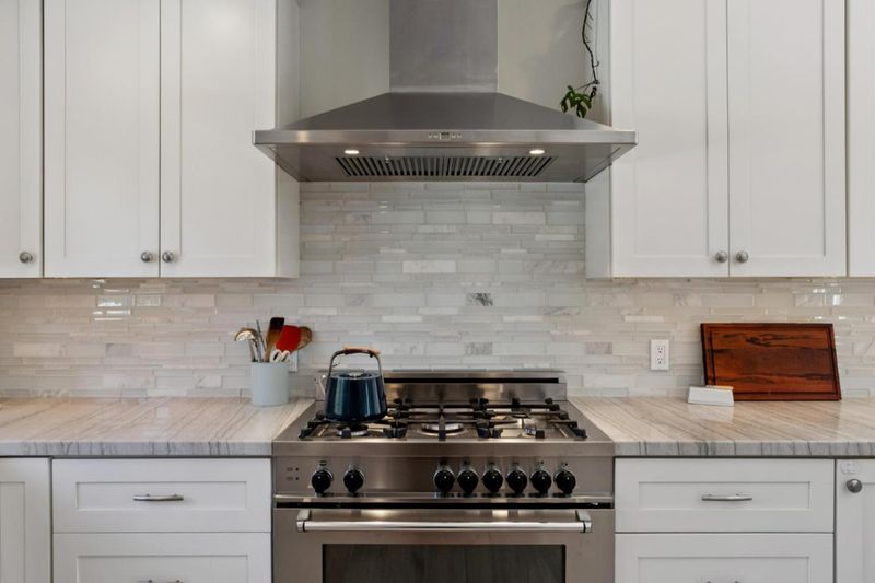 - Cooktop - Gas, Countertop - Quartz, Dishwasher, Exhaust Fan, Garbage Disposal, Hood Over Range, Ice Maker, Microwave, Oven Range - Gas, Refrigerator