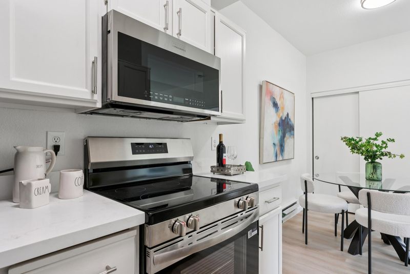 - Dishwasher, Electric Range, Microwave, Dryer, Washer, Gas Water Heater, Tankless Water Heater, Counter - Solid Surface, Electric Range/Cooktop, Disposal