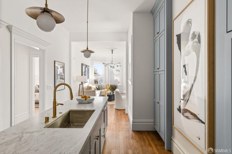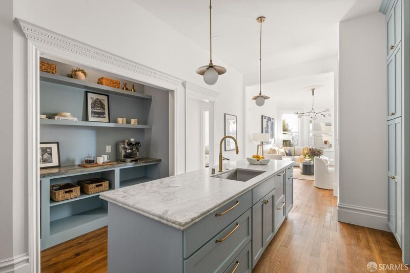 Located in the heart of Pacific Heights, this extensively remodeled Queen Anne Victorian is situated just a block from Alta Plaza and stones throw from Fillmore and Sacramento shopping areas. The 3 bedroom/2 bath full floor flat has been taken down to the studs, while painstakingly preserving its gorgeous period detail. With soaring 10' 6'' ceilings, the gracious entry welcomes you in with a sweet sitting area that leads to an elegant double parlor living room. The chef's kitchen features high end honed Calacatta Dolomite stone, custom built-in cabinets, all new high end appliances including a 6-burner Wolf range. Updated with brand new wiring and plumbing throughout and designer lightingno expense was spared. The open layout between kitchen and den provides an inviting and casual entertaining space, with the den and primary bedroom washed in south facing light throughout the day. The expansive primary suite includes a walk-in closet and elegant remodeled bathroom with double sinks, double shower, and full linen closet. As a final bonus, the roof has been recently replaced and this building had the foundation completely redone in 2003, with beams and sprinklers, which allows for one deeded parking space to the unit. With in-unit laundry and a small shared yard/bbq area, this home has it all. A truly special place - come visit us!