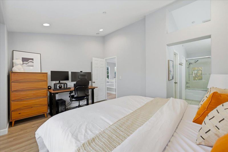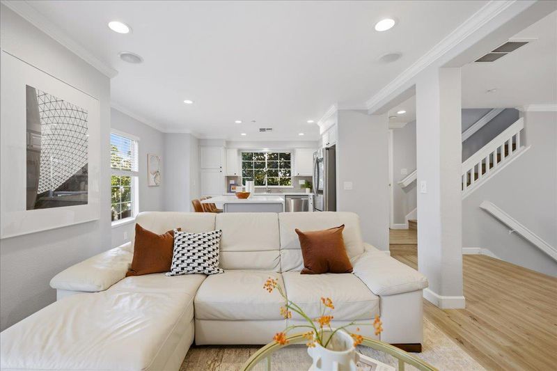 Fantastic end-unit home in the highly sought-after Willows Community! Step inside to a bright and airy living room with soaring ceilings that create a dramatic, open feel. The modern kitchen is a true highlight, offering ample cabinet space, an eat-in island, and a seamless connection to the family room making it ideal for everyday life and entertaining. A separate, spacious dining area provides the perfect setting for family meals and special gatherings.The home features three generously sized bedrooms, including a luxurious primary suite with vaulted ceilings, a walk-in closet, and a dual-sink vanity. Beautiful hardwood flooring runs throughout the home. Enjoy outdoor living in the large private patio, perfect for relaxing or hosting guests. The finished two-car garage includes a washer and dryer and offers plenty of storage and convenience.Ideally located within walking distance to Rubino Park, featuring a playground, BBQ area, and basketball courts. Convenient access to Almaden Expressway, Highways 85 and 87, Downtown Willow Glen, and Oakridge Mall for shopping and dining. Dont miss the opportunity to make this charming home your own!