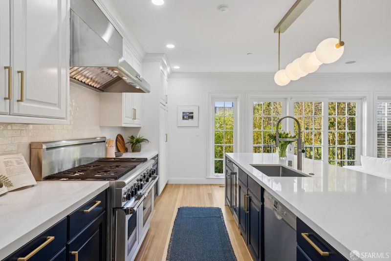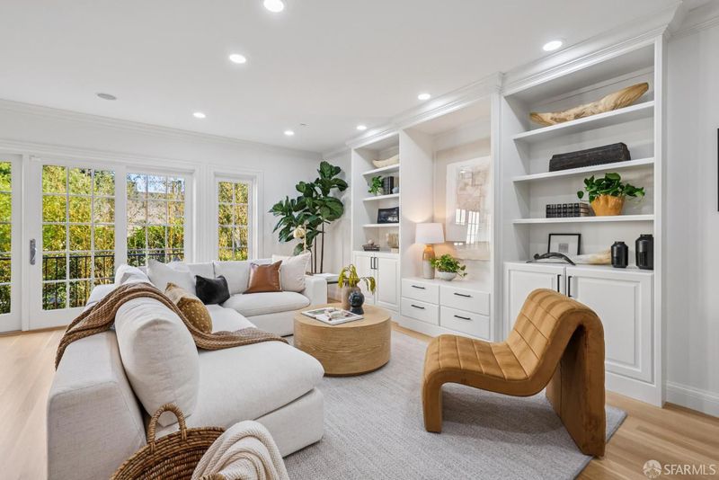This grand Presidio Heights home has been thoughtfully renovated and updated. The well designed home has a very desirable floor plan, it boasts 5 bedrooms and 5.5 baths. Spanning the back of the property overlooking the garden is a chef's kitchen with center island and professional grade appliances. It is open to the bright family room. The formal dining room is ideal for dinner parties with friends and family. The large bright living room has built-in bookcases flanking the fireplace, a wonderful space for entertaining on a grand scale. A conveniently located half bath offers added convenience. On the floor above are 4 well proportioned bedrooms and two full baths both with double sinks. The top floor has a generously sized primary suite, the ensuite bath has double sinks, heated floors, a steam shower and a large soaking tub. The secluded lounge with fireplace and a deck that offers views of the GG bridge tower is at the front of this level. A second full bath and laundry room complete the secluded top floor. On the garden level is a family room, ideal for a home theater, and an additional full bath. There is internal access to the oversized garage. Located half a block from the shops and restaurants of Sacramento Street, Presidio Heights Playground and all the amenities that make this one of San Francisco's most desirable neighborhoods are at your fingertips.