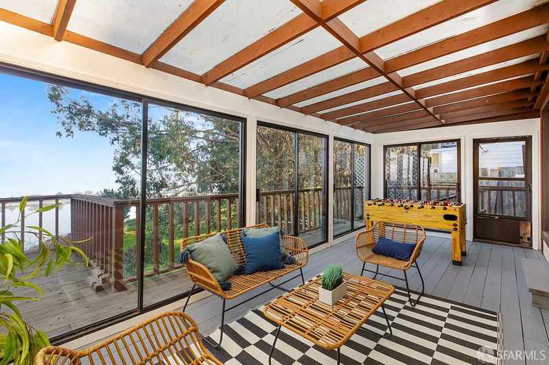 Full Marketing Schedule Planned- No Early Offers Rarely Available Family Home on one of the best View Parcels in town (Lot 8,285 sf) - There are panoramic water views of the SF Bay, Brisbane Lagoon, Brisbane Downtown and partial views to San Francisco. This distinctive residence offers a split level floor plan, perfect for entertaining and everyday living - the floor plan is open concept with high function and always takes advantage of the views and natural vibe that surrounds it. The formal living room, dining room and family room all boast period fireplaces, handsome oak floors with beautiful natural light throughout. The spacious east facing deck seamlessly connects these public rooms to the wonderful water views, fruit trees and natural surroundings. You'll love ascending the front stairs to a formal entry and living room with vaulted ceiling and direct SF Bay views. There is a suite of public rooms on this main level - Open Kitchen with Brisbane Village views, breakfast area, den, formal dining room and bonus game room or workout space. A view deck built nearly the full length of the property connects these public room, ideal for indoor/outdoor living. Half a flight of stairs up is a marvelous Primary Bedroom Suite with generous closet space, soaking tub + shower and Bay Views. There are two additional spacious bedrooms on this level that share a full hall bath with shower over tub. From the main level and down a wide half flight of stairs is an awesome Family Room that walks right out to the water view deck. There is a 4th Bedroom and 3rd Full Bath on this level - extra storage and a separate laundry room with side by side washer/dryer. A few steps down lead to a 2 Car Side by Side Garage - The driveway also fits 2-3 cars for guests.