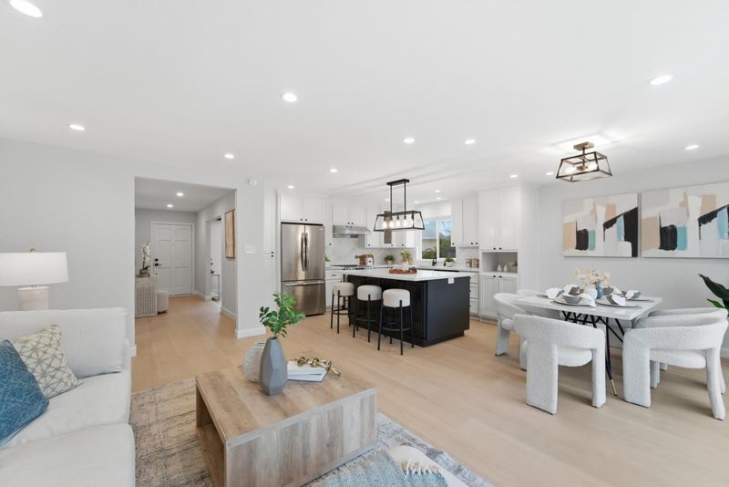 Situated on a quiet cul-de-sac in the desirable Berryessa neighborhood, this beautifully updated single-story home offers an open and spacious floor plan with over 1,800 sq ft of living space, featuring 4 bedrooms and 2 full bathrooms. The generous lot provides excellent potential for a future ADU or an ideal setting for outdoor entertaining. The home showcases professionally landscaped front and back yards and has undergone numerous major upgrades, including fresh interior and exterior paint, new flooring, and recessed lighting throughout. The chefs dream kitchen features a large island, perfect for gatherings and entertaining. Both bathrooms have been tastefully remodeled with modern finishes and completed with fully approved permits. Large windows in the living and family rooms fill the home with abundant natural light and offer serene views of the backyard deck. A variety of mature fruit trees, planted over the years, enhance the outdoor space. This is truly a charming place to call home.