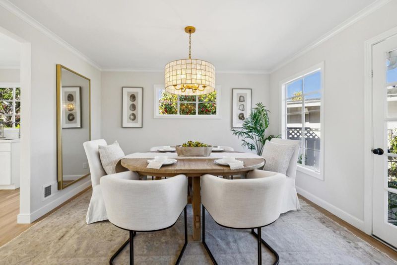 Quaint, charming & beautifully updated, this home is set along one of San Mateos most iconic tree-lined streets, where classic peaked roofs, bay windows and white picket fencing create timeless curb appeal. A welcoming entry opens to a thoughtfully restored interior featuring gleaming hdwd floors, fresh paint, crown molding and abundant natural light. The remodeled kitchen showcases quartzite counters, new stainless steel appliances and a distinctive breakfast area, ideal for everyday living, while a stylish wet bar w/ wine cooler enhances the homes entertaining appeal. A chic retro-inspired powder room adds character, complemented by a formal dining room w/ expansive windows. The spacious living room features a corner brick fireplace and seamless access to a large rear patio offering a serene indoor-outdoor setting. Expansive fenced front yard for play and relaxation. Two generous bedrooms, an updated bath with designer tiles and thoughtful details throughout. Lower level offers a versatile bonus room + bath en suite, ideal for office, gym or flex use. Additional highlights: attached 2-car garage, recessed lighting, new electrical, new roof, newer furnace & water heater. Ideally located near downtown San Mateo, parks, transit & midway between SF & Silicon Valley. A Must See!