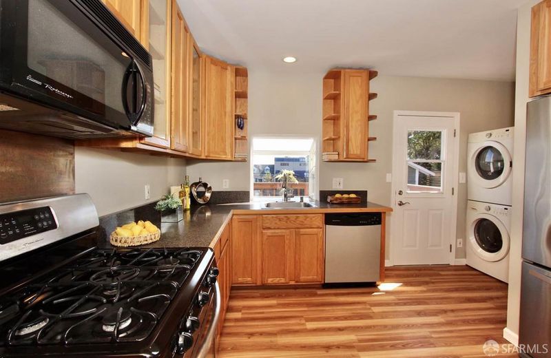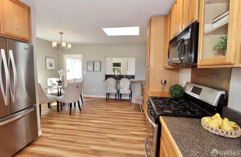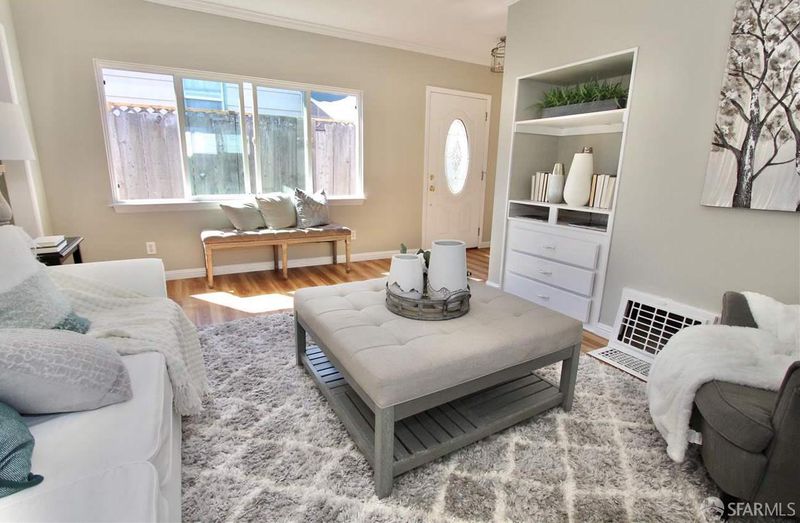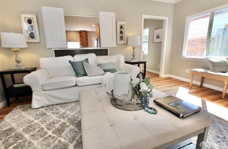 Discover the perfect blend of style, comfort and privacy in this beautifully updated detached cottage style home offering a serene retreat in the heart of San Bruno. Thoughtfully designed with a bright open floor plan, this move in ready residence feat. the gourmet kitchen w a breakfast area, warm oak cabinetry, sleek black granite style countertops & SS appliances incl a gas range. Adjacent to the dining area is a built in office nook w custom cabinetry, ideal for working from home. Sun filled living spaces are enhanced by skylights, modern flooring, custom window shutters, recessed lighting & seamless indoor outdoor flow. The spa like bathroom showcases a modern white vanity, custom tilework, and a glass enclosed shower and tub combination. The bedroom offers built in shelving & tranquil views of surrounding greenery. Step outside to a private outdoor oasis w a stained redwood deck, low maintenance artificial turf lawn & a charming paver patio perfect for entertaining. A detached bonus structure provides flexible use as a home office, storage, or recreation space. The contemporary exterior feat charcoal siding, crisp white trim & a private gated entrance. Ideally located on a residential st near local favorites & shopping. EZ access to BART, Caltrain, SFO, SF & San Mateo Bridge