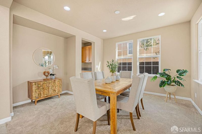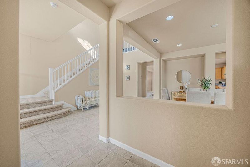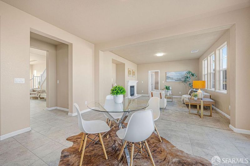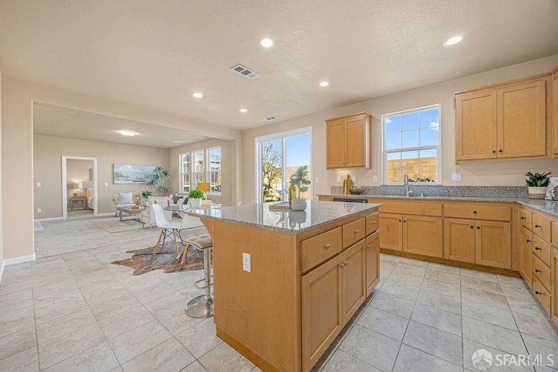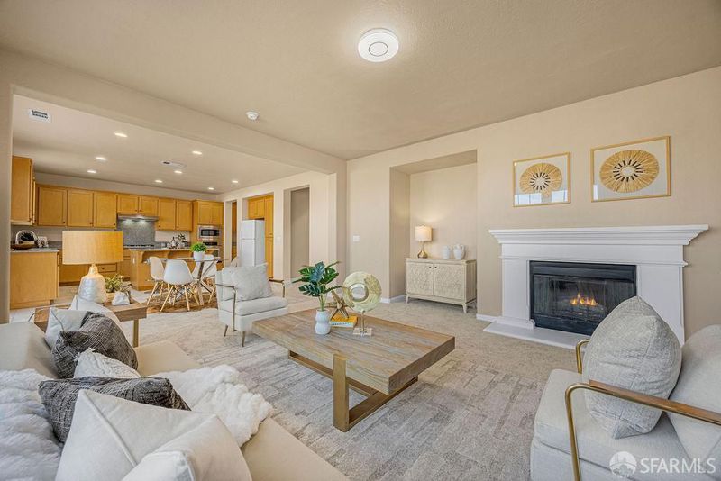 Gracefully set behind fresh landscaping and welcoming curb appeal, this expansive 2,900 sqft residence opens with a charming front porch and an impressive two-story tiled entry that instantly makes a statement. Inside, soaring ceilings and an abundance of natural light create an airy atmosphere, highlighted by a bright living room with an elegant tray ceiling - perfect for both everyday living and special occasions. Designed for effortless entertaining, the formal dining room features a built-in niche for added flexibility and flows seamlessly into the kitchen through a convenient walk-through bar. The heart of the home unfolds into a spacious open-concept family room and eat-in kitchen, overlooking the backyard and thoughtfully appointed with granite countertops, an oversized island, wall oven and microwave, and generous cabinetry. Sliding glass doors extend the living space outdoors, making indoor-outdoor entertaining effortless, while the family room's cozy fireplace and custom wall niche provide the perfect setting relaxed evenings at home. A highly sought-after junior primary suite offers a private retreat complete with a full bath - ideal for guests, multi-generational living, or home office. A powder room and a spacious under-stair storage closet complete this level with everyday practicality. Upstairs, four bedrooms are smartly arranged with two on each side of the landing, creating privacy and balance throughout the floor plan. The primary suite is a true sanctuary, featuring a spa-like ensuite bath with a soaking tub, separate shower, dual vanity and a spacious walk-in closet. A hall bath with double vanity and a separate water closet adds convenience, while the laundry room offers built-in cabinetry and ample space to keep everything organized. Set on a generous 7,547 sqft lot, the expansive backyard boasts a patio, open lawn, and the rare benefit of no rear neighbors - an ideal canvas for outdoor entertaining or your own private oasis. A two-car garage and two-car driveway provide ample parking and storage. Tucked away in a lush, well-established neighborhood, this home offers the perfect balance of tranquility and convenience. Enjoy easy access to nearby shopping centers with Safeway and County Market, spend weekends at Nelson Ryan Park just down the street, or explore one of the many surrounding parks. With quick access to BART, Highway 4, and the Antioch Bridge, commuting and weekend adventures are effortlessly within reach