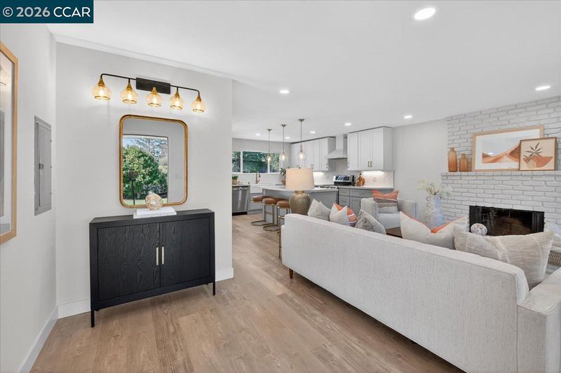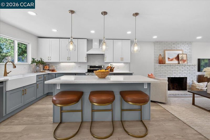 Open the door to an all-new, completely renovated single-level home on .27 acres in Walnut Creek’s desirable Buena Vista neighborhood. Centrally located near the vibrant downtown, Broadway Plaza, BART, top WC & Acalanes District schools, 13-acre Larkey Park. 1322+/- light-filled SF. Loads of potential to customize level yard w/Income-producing ADU, guest house, resort-style bkyd, pool & more. The beauty lies in the details of this dynamic, contemporary, open-concept design, set behind an inviting front porch. 3 bds. 2 bths. Wood grain luxury vinyl floors. Dual pane windows & doors. Recessed lighting. Great rm anchored by front-facing bay window, wood-burning frpl. Chef’s kitchen. Quartz counters, tile backsplash, porcelain apron sink, dual-toned cabinetry, island/breakfast bar, pendant lighting, brushed-gold fixtures. LG range. GE dishwasher. 4-dr refrigerator. Dining area w/slider to bkyd. Primary suite w/slider to bkyd. En suite w/single sink vanity, shwr w/rain & hand-held shwrhds. 2 frt-facing bdrms share bth w/single-sink vanity & shwr. 2-car detached garage, new door, gate, LG stacked washer/dryer, water heater, Lennox HVAC, gutters, downspouts, exterior lighting, interior/exterior paint, siding. Frnt synthetic turf. Mature foliage. Deep setback. Long driveway can be gated.