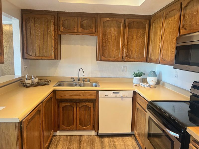 - Dishwasher, Electric Range, Microwave, Free-Standing Range, Refrigerator, Dryer, Washer, Gas Water Heater, Breakfast Bar, Laminate Counters, Electric Range/Cooktop, Disposal, Range/Oven Free Standing, Wet Bar