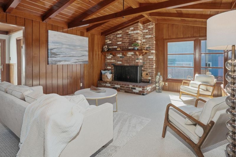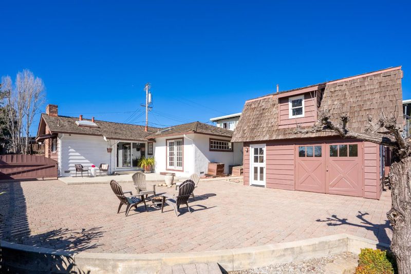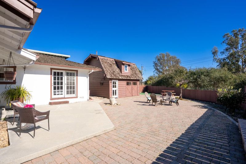 Amazing location, just across from Corcoran Lagoon & very short walk to the beach! Beautiful custom home w/ fantastic woodwork! You will absolutely LOVE the Living Room w/ its beautiful brick fireplace & hearth, extra large windows w/ ocean peaks, & vaulted wood beam ceilings giving this beach home the feel of a Tahoe cabin! It is sure to be the favorite gathering place for friends & family. The kitchen & dining areas are light & bright w/ direct access to the expansive yard, making Al Fresco dining a breeze. The Primary Bedroom Suite is very spacious w/ a large walk-in closet & full En Suite. Additionally there is a well-sized guest bedroom & full guest bath. The 2-car garage has a built-in office area, that can easily be converted back if desired. The backyard has beautiful paver hardscaping, perfect for summertime entertaining, which extends to the front creating a great driveway for vehicles/RV/boats. There is also an AWESOME workshop w/ a woodburning stove, full bathroom AND upper game room! Want to practice your golf skills? Well you are in luck because there is also an adorable putting green AND plenty of space for a garden, too! With no backyard neighbors & easy to maintain landscaping, this home is a MUST SEE w/ so much charm & character and so close to everything!